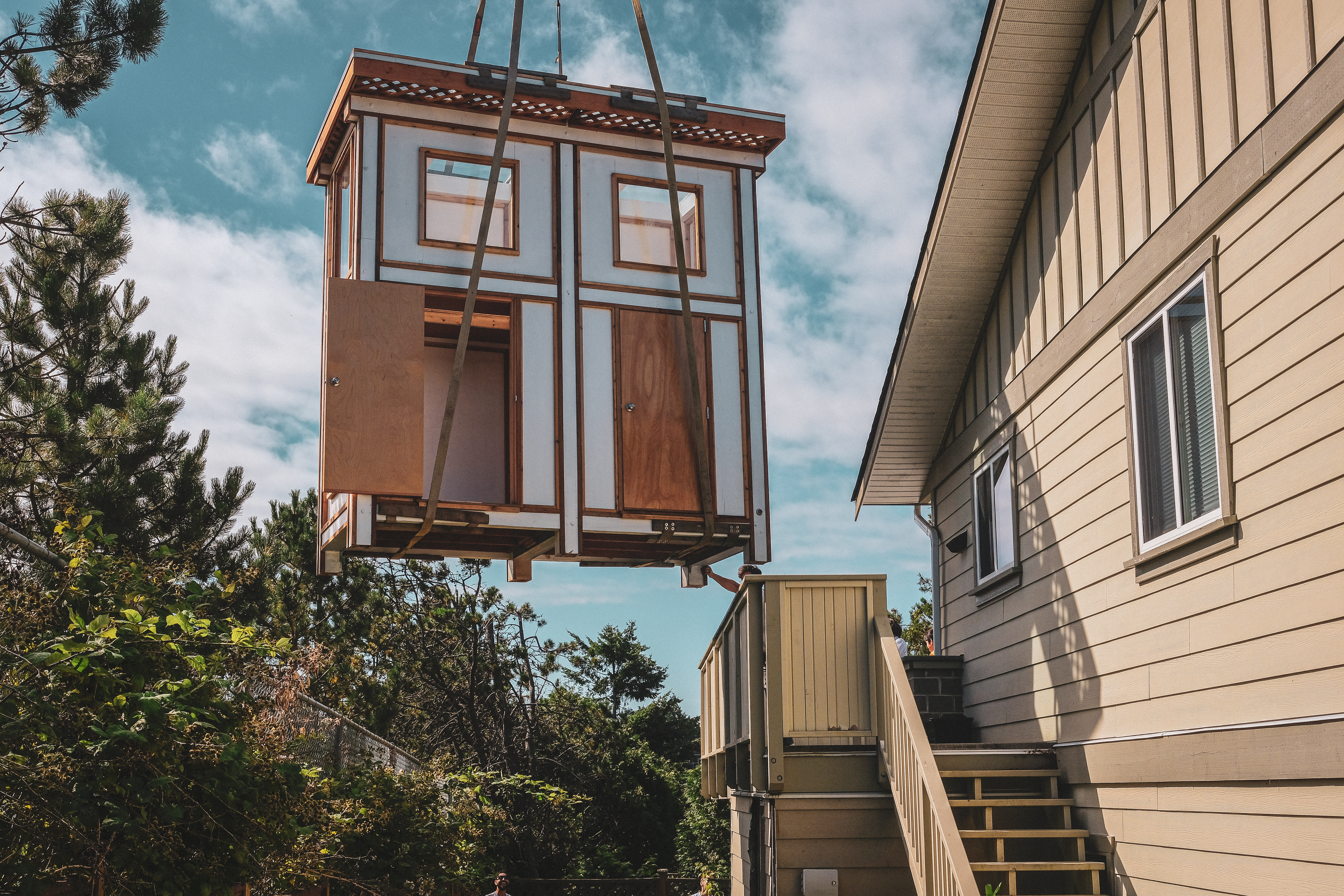 I cannot begin to describe how incredible it was to see this mammoth of a structure, practically a small building, being lifted up and driven around Victoria as if it was a plaything. I suppose a play-home is essentially just that, albeit scaled up significantly. As our convoy twisted and turned upon Victoria’s busy streets, I could not even keep count of how many heads turned, some commuters even flashed me a thumbs-up, whilst even more took their phones out for a novel snap. This wonderous moving theatre finally arrived at our home, and I could hear my kids audibly yell in excitement just watching the wonderous sight pull in.